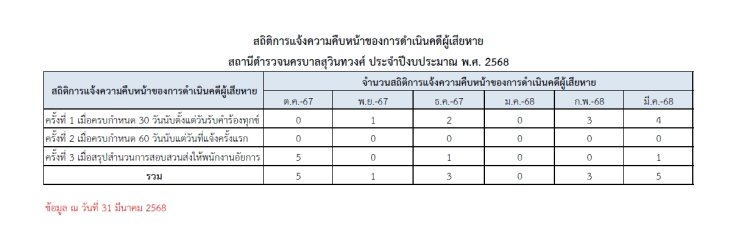 สถิติการแจ้งความคืบหน้าของการดำเนินคดี ต.ค.67-มี.ค.68 (Word)