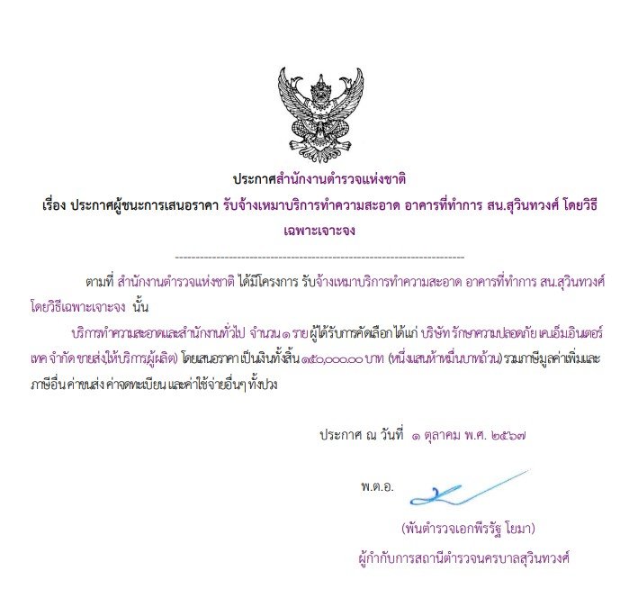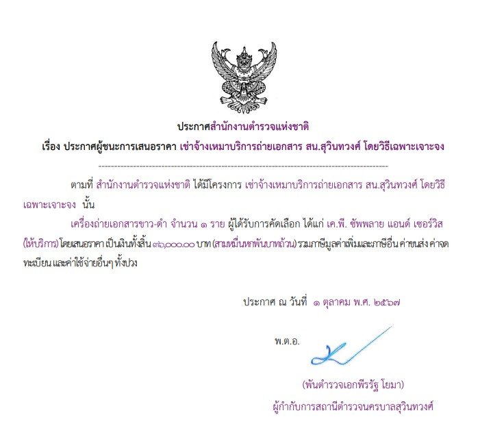 ประกาศประจำเดือนพฤศจิกายน 2567 ไม่มีการจัดซื้อจัดจ้าง