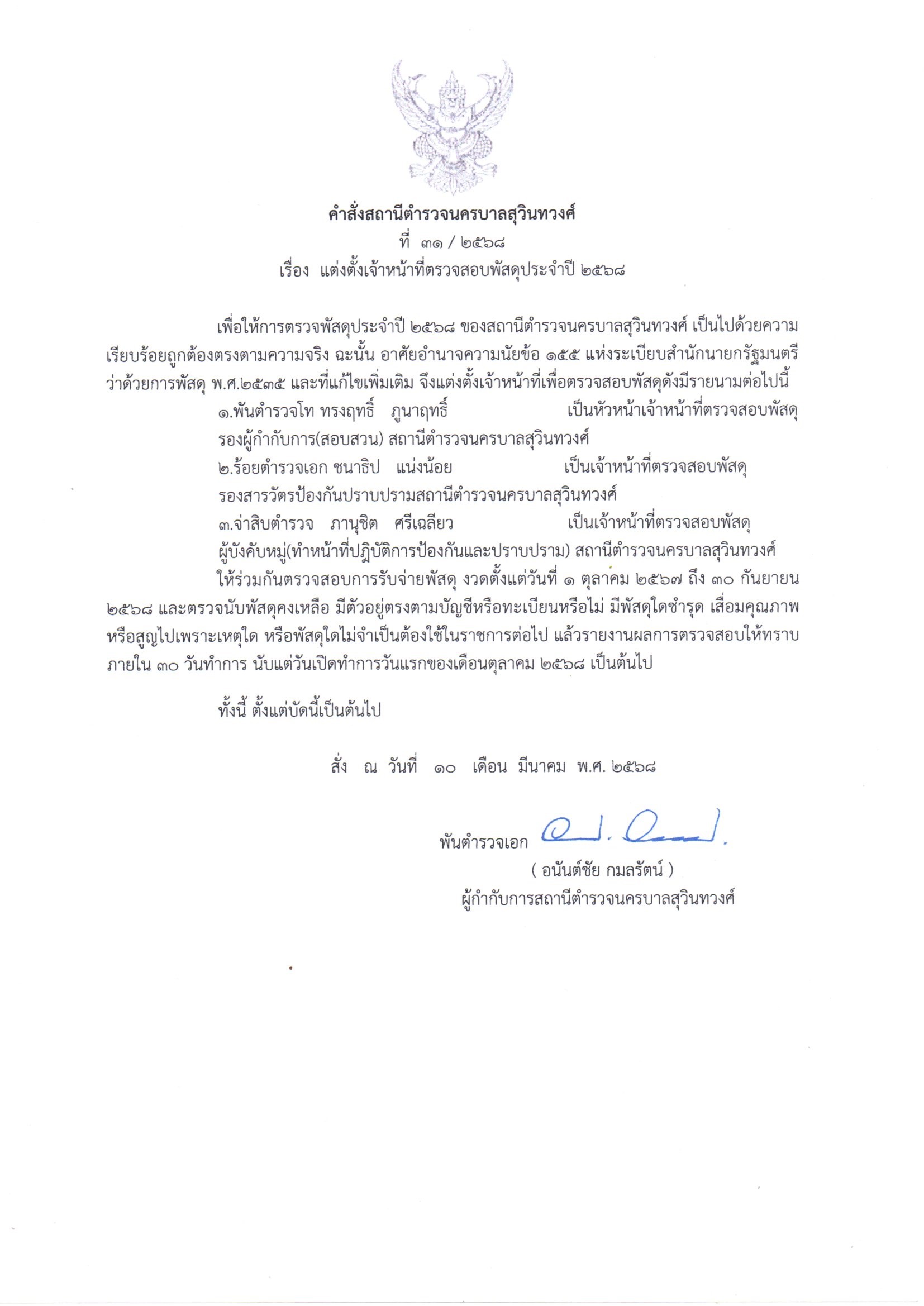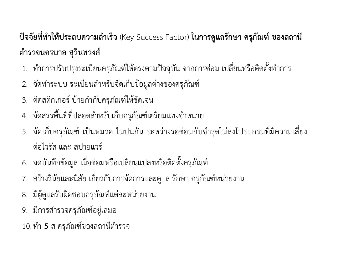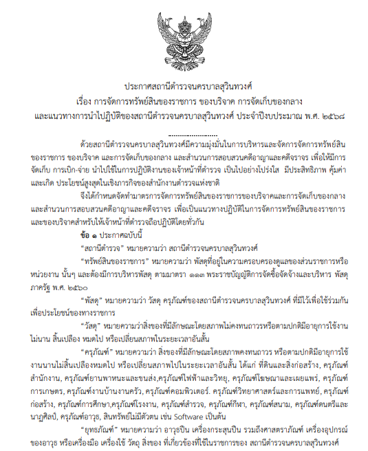 ในการดูแลรักษา ครุภัณฑ์ ของสถานีตำรวจนครบาล สุวินทวงศ์