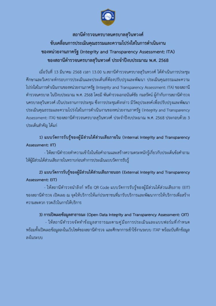 O24  มาตรการการยกระดับคุณธรรมและความโปร่งใสภายในหน่วยงาน
